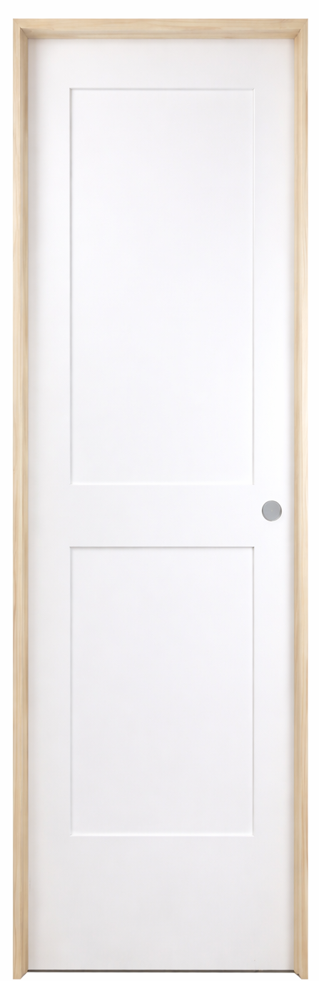 Great transitional interior door whose solid core allows for privacy and sound reduction. Primed MDF panels are ready for painting. Sturdy real wood frames can be painted to match the trim or the doors. The door is prehung - making it ready for an install. Reversible swing allows for flexibility of inswing or outswing install. We build these doors as in-swing but can be done as outswing per request. 18 inches wide is a good size for a closet door or a smaller space.