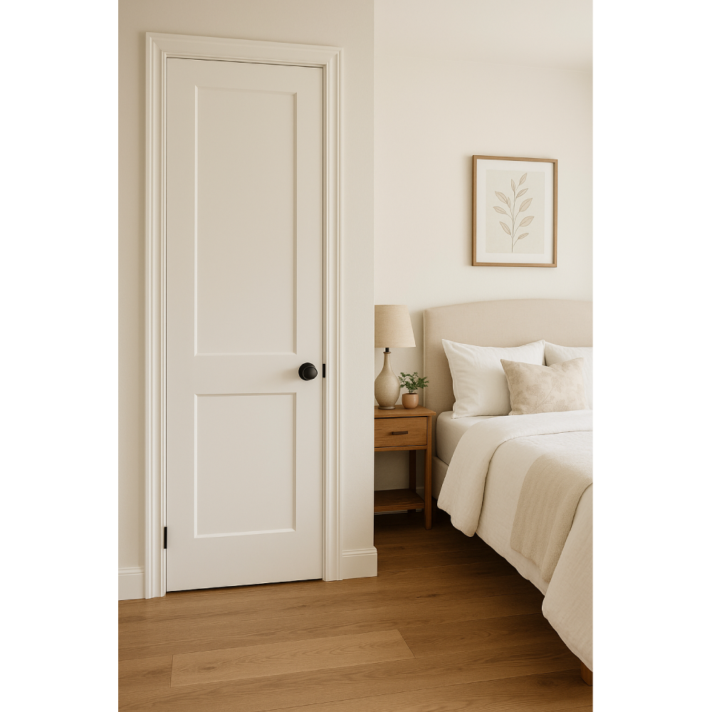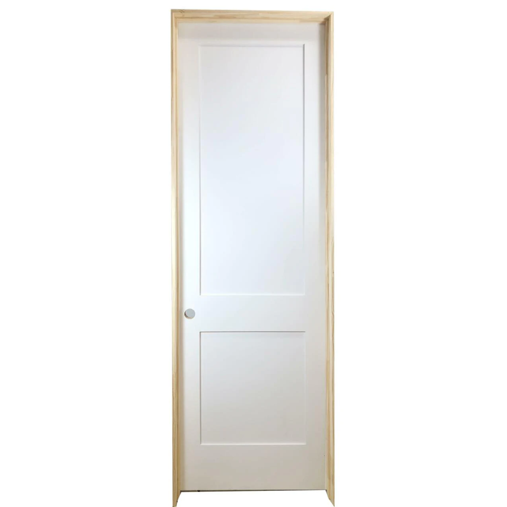 Buy shaker interior doors for new builds or to update your home. Timeless 2 panel shaker design fits into any interior décor and design. The door has pine core and MDF veneer. The veneer is primed white and can be painted in any color to match your style and taste. 2 panel design provides maximum privacy and can be used for any room in the home. These shaker doors are available in widths from 18 in to 36 in and as french interior doors. Doors ship nationwide or can be picked up from our door showroom in Dallas, TX. Add to cart to get a shipping estimate with your zip code.