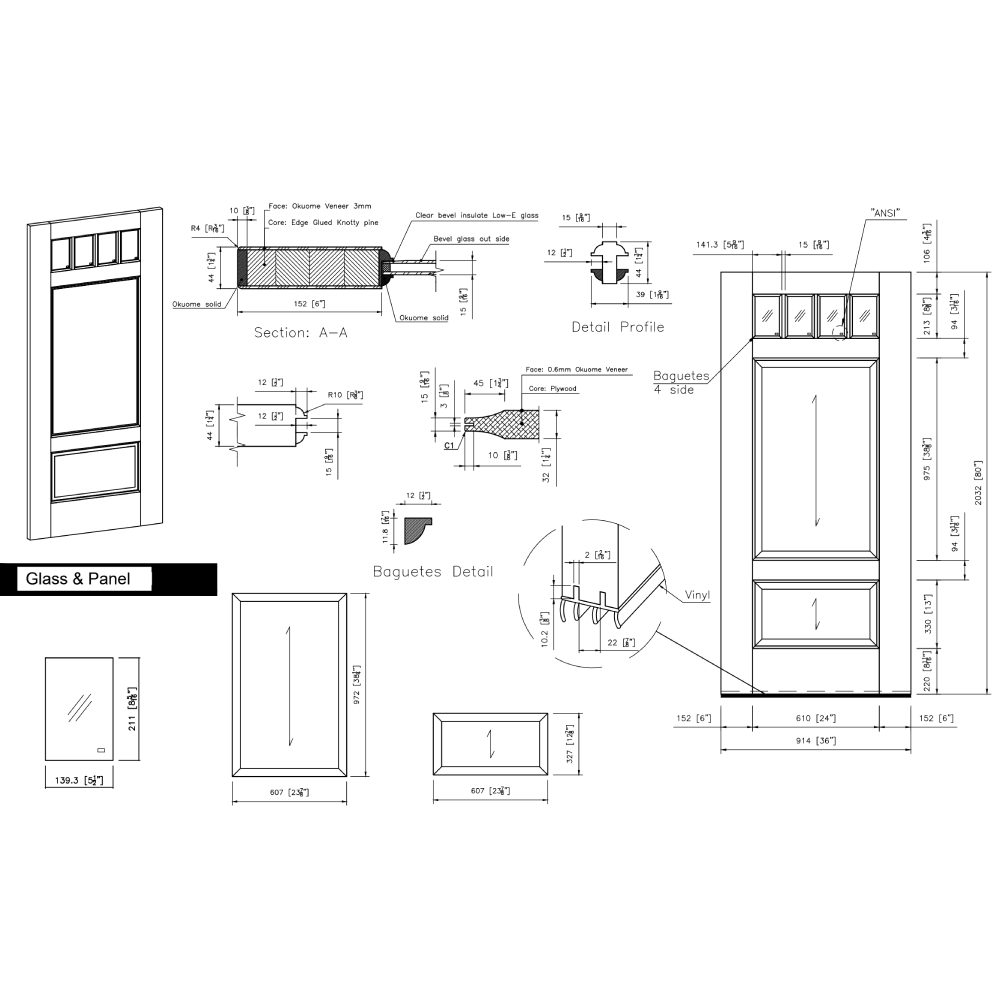 Size: The door measures 36 inches in width and 80 inches in height, which is a standard size for a single entry door to a home, office, or other building.