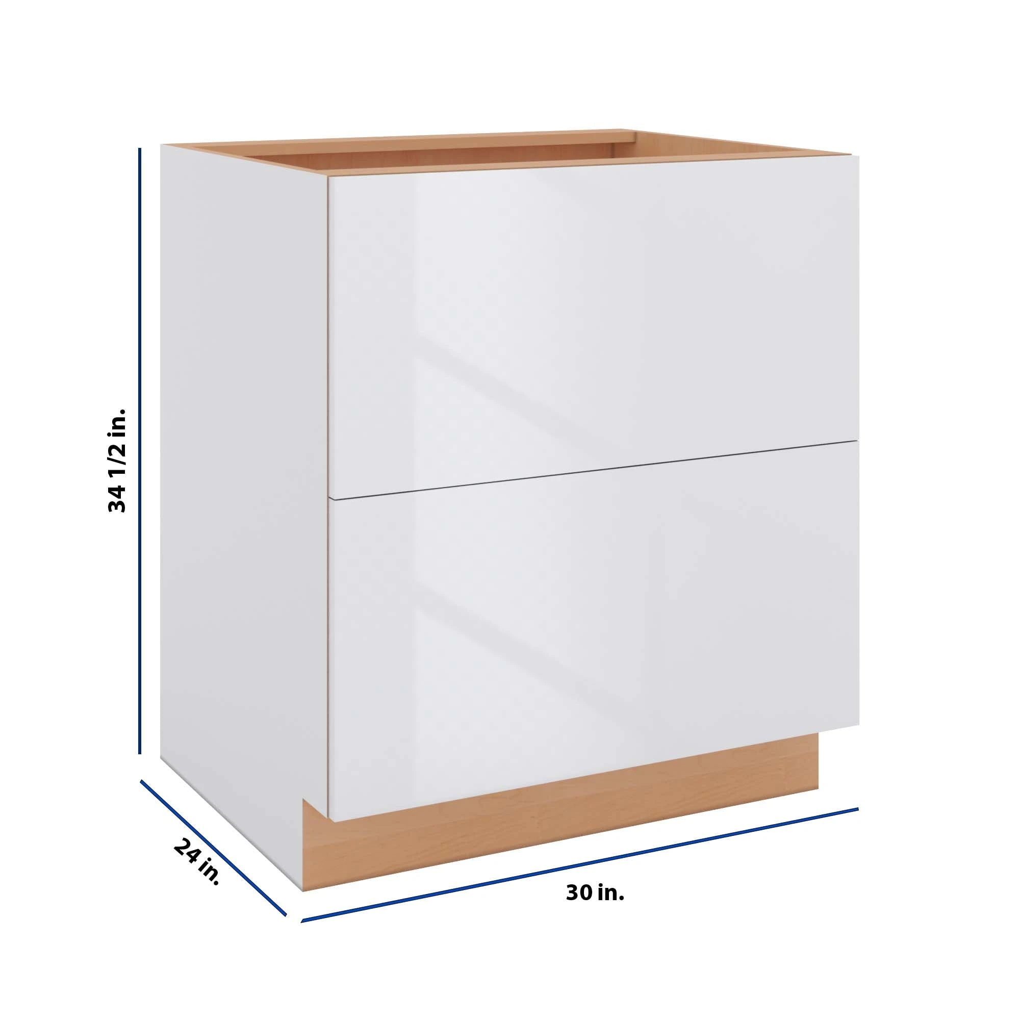 Modernform Cabinet Gloss White 30" W X 34 1/2" H X 24" D 2 Drawer Base Cabinet