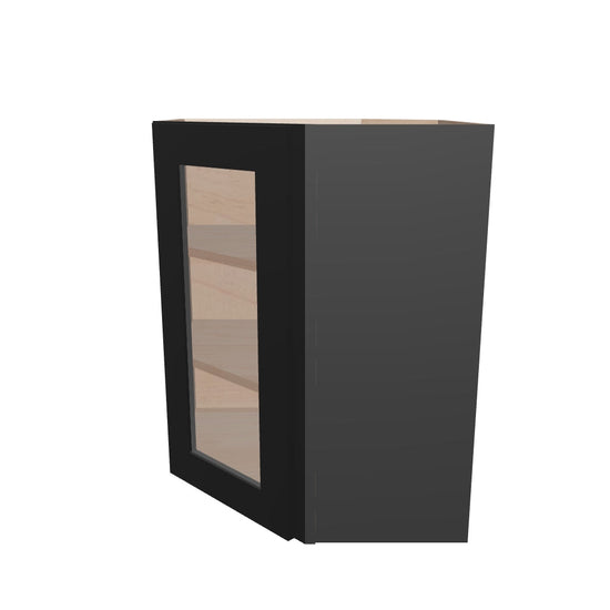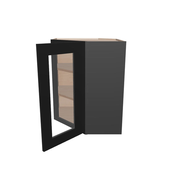 Modernform Cabinet Onyx Black Shaker 24" W X 30" H X 12" D Wall Diagonal Corner Glass Door Cabinet
