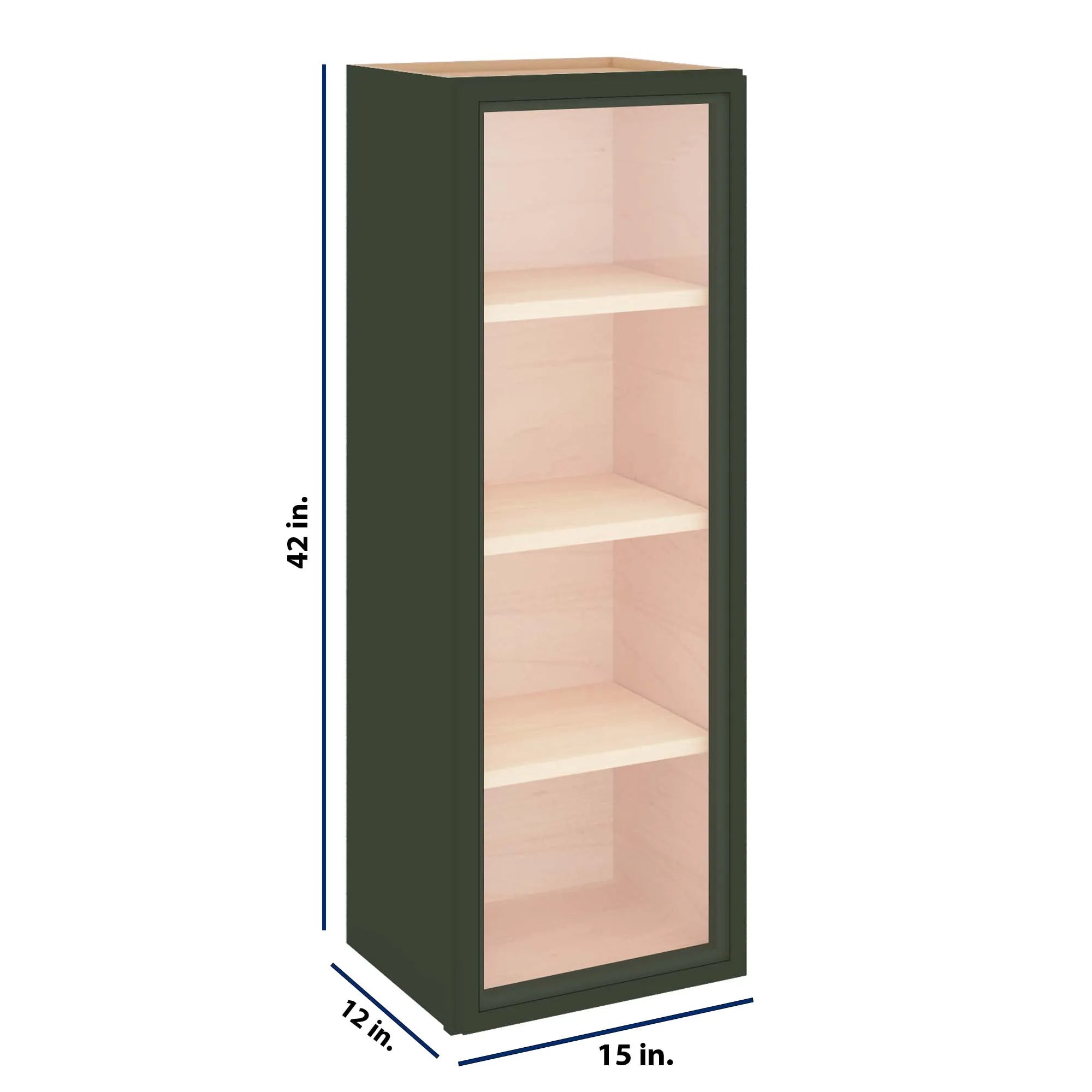 Modernform Cabinet Slim Sage Green 15" W X 42" H X 12" D Single Glass Door Wall Cabinet