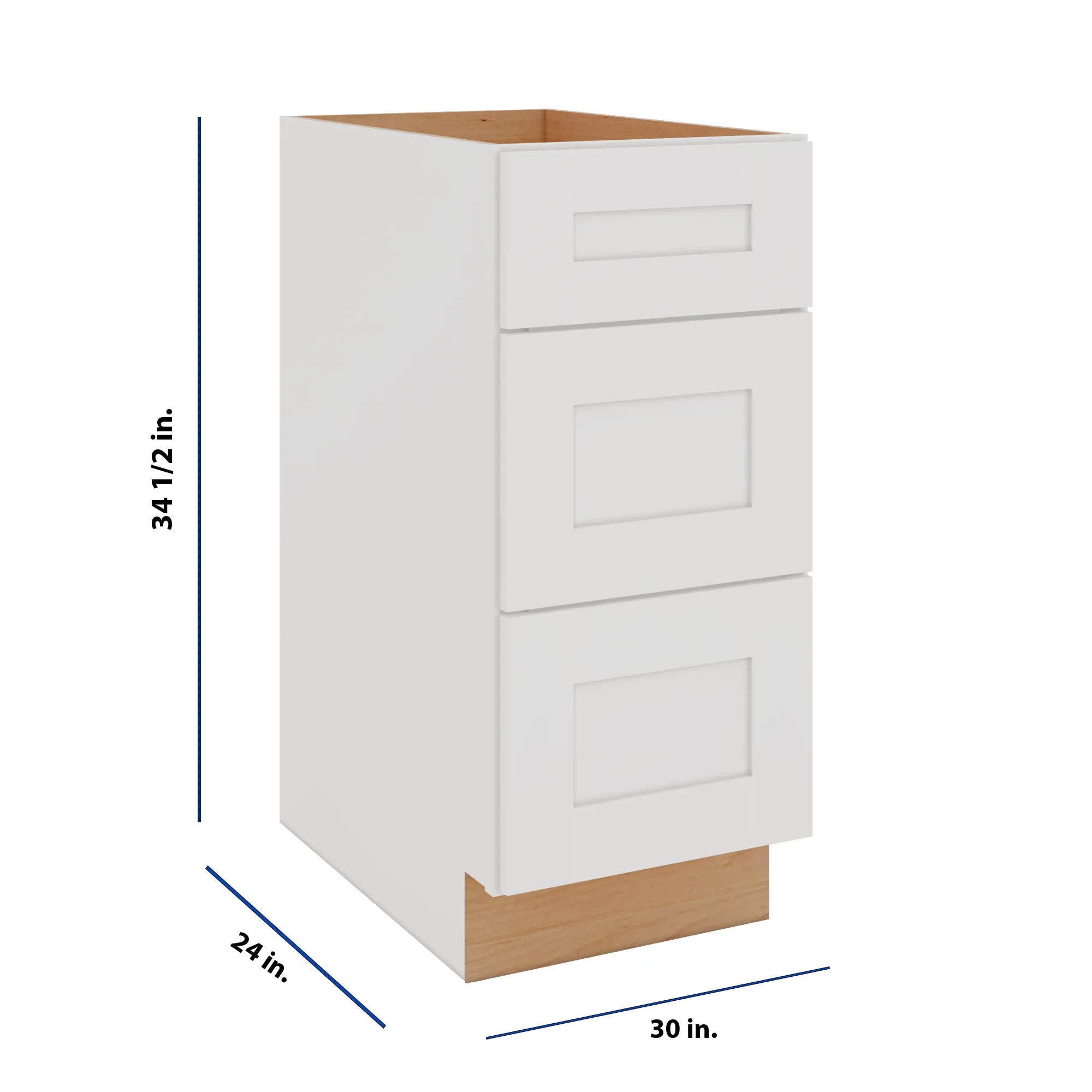 Modernform Cabinet White Shaker 15" W X 34 1/2" H X 24" D 3 Drawer Base Cabinet