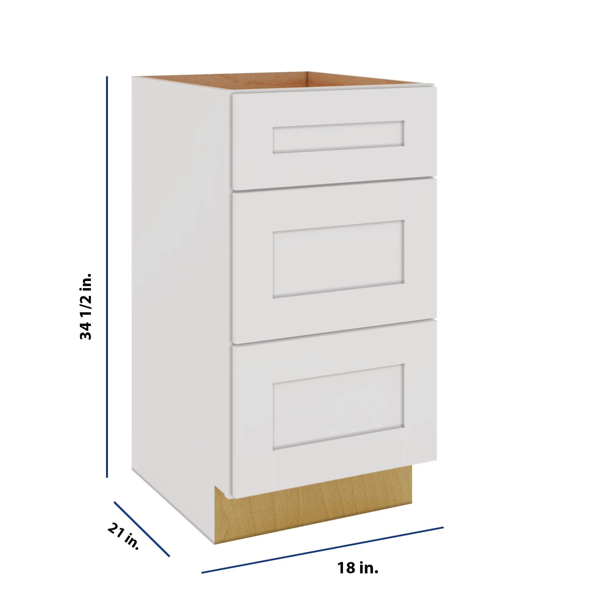 Modernform Cabinet White Shaker 18" W X 34 1/2" H X 21" D Vanity Base with 3 Drawers